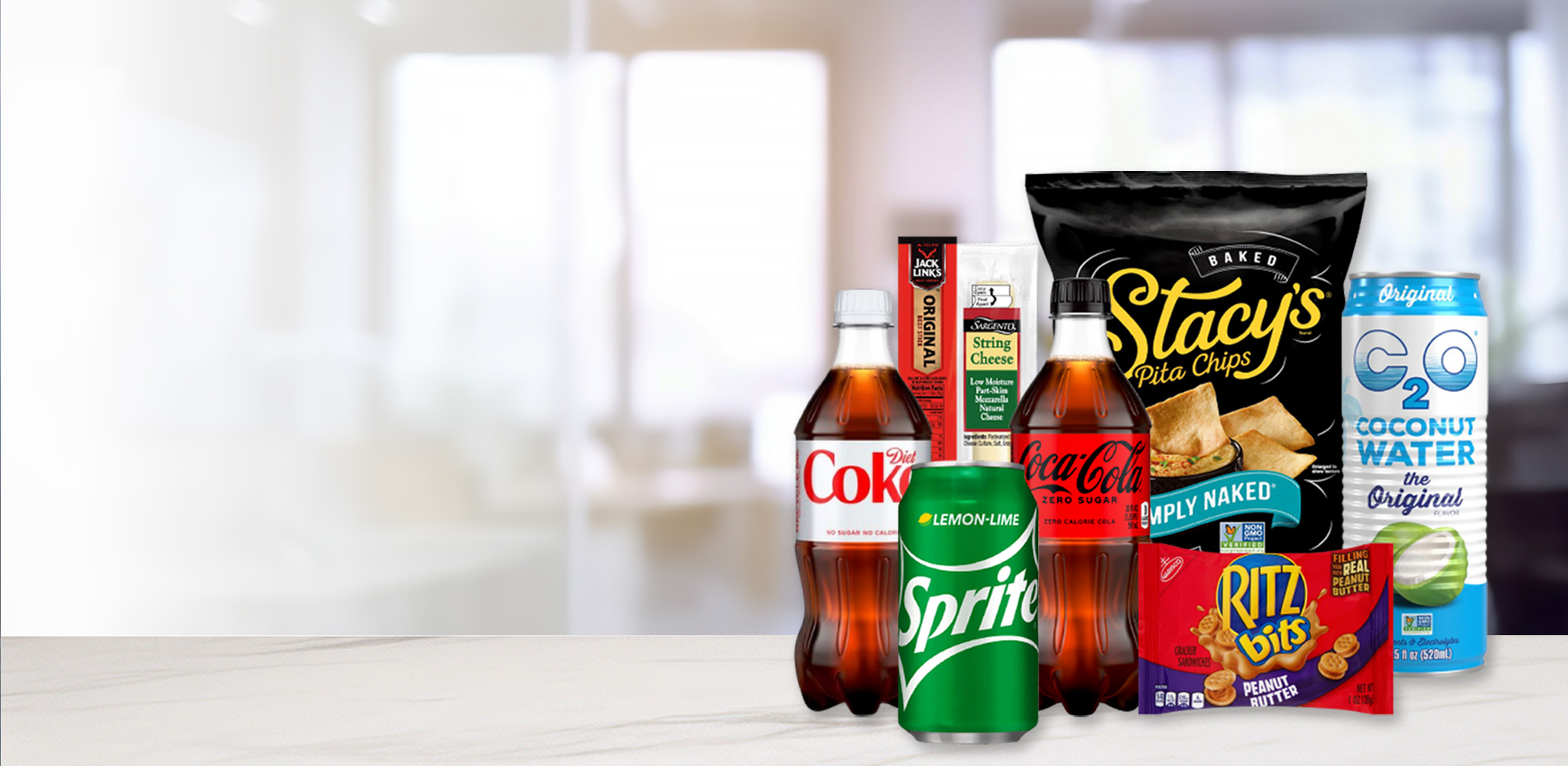 Keep your team engaged, energized, and satisfied with convenient snacks and drinks available right in your office pantry or micro market. Choose from a selection of candy, chips, and healthy snack options. We’ll help you customize popular beverage selections like sparkling water, iced teas, and energy drinks to keep your team refreshed and satisfied throughout the day.